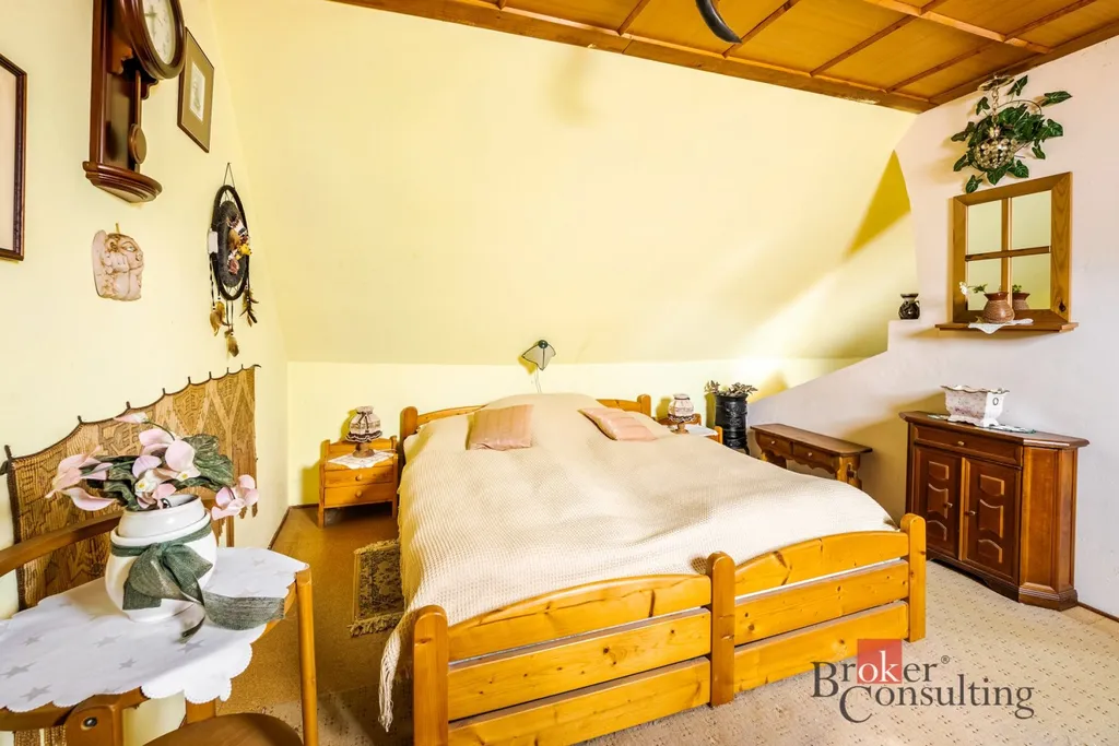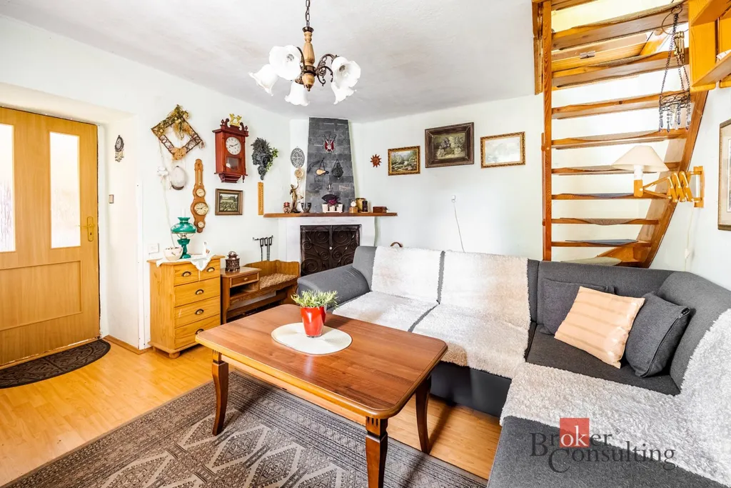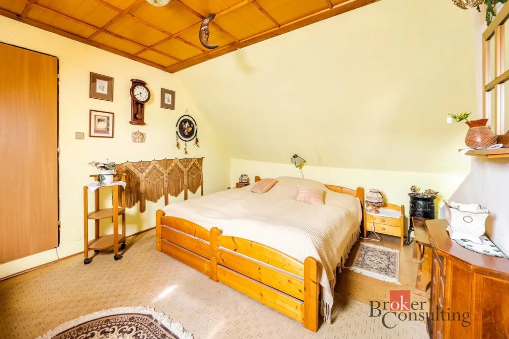 Dispozice chalupy je 4+1 s obytným podkrovím. K nemovitosti náleží garáž/dílna, dva sklepy, vejminek se vstupem na zahradu a zastřešená pergola.