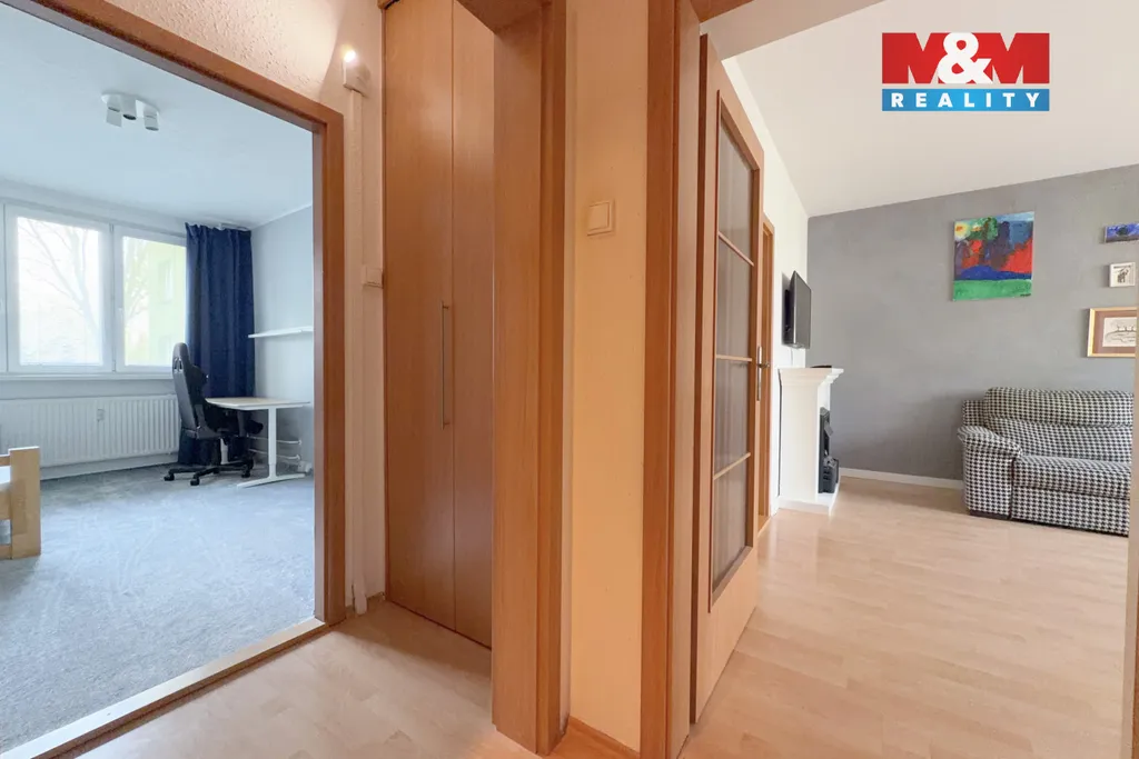 Nabízíme k prodeji prostorný a velmi dobře dispozičně řešený byt 4+1 o užitné ploše 79 m², který se nachází v 1. nadzemním podlaží udržovaného panelového domu s výtahem v klidné části sídliště s dostatkem zeleně. Dispozice bytu nabízí tři samostatné neprůchozí pokoje, obývací pokoj, kuchyni, lodžii a sklep. Byt působí velmi příjemným a udržovaným dojmem. V obývacím pokoji je umístěna vestavěná knihovna a elektrický krb, které dotváří útulnou atmosféru, a v chodbě se nachází praktické vestavěné skříně poskytující dostatek úložného prostoru. Dům je pravidelně udržovaný a obyvatelům je k dispozici také kolárna. Lokalita je vyhledávaná především díky klidnému prostředí a výborné dostupnosti služeb. V bezprostřední blízkosti se nachází školy, školky, obchody, lékaři i zastávky MHD.