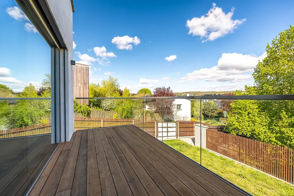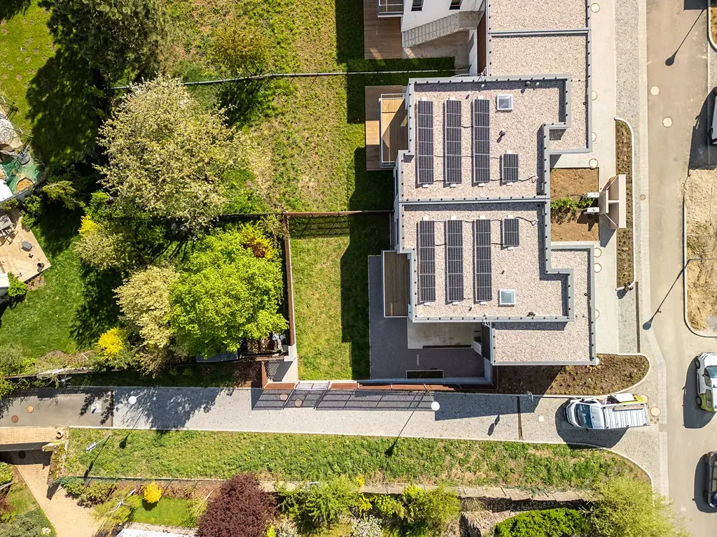 Vila, kompletně dokončená a připravená k nastěhování, leží po levé straně ulice Sochorova ve středočeských Řevnicích na pozemku o 434 m2. Užitná plocha obytné části je 146 m2, včetně garáže 172 m2 a celková plocha včetně terasy, garáže a skladu je 189 m2. Jde o moderní stavbu nabitou pokročilými technologiemi a optimalizovanou pro úsporu energie. Doporučujeme osobní prohlídku.