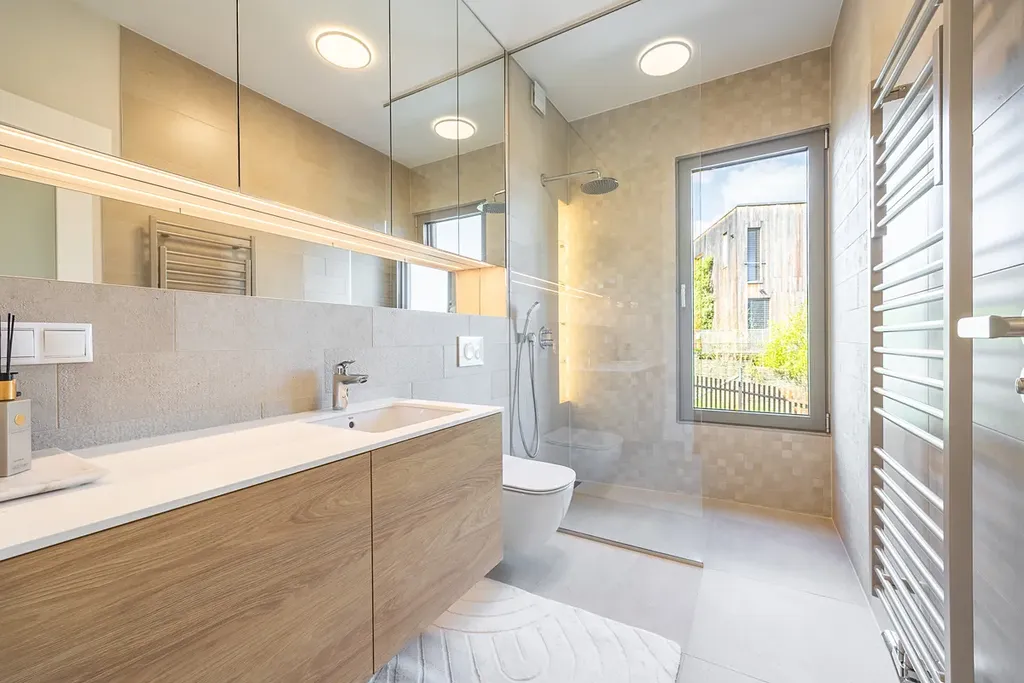 – Vytápění pomocí tepelných čerpadel vzduch-voda a systém teplovodního podlahového vytápění.