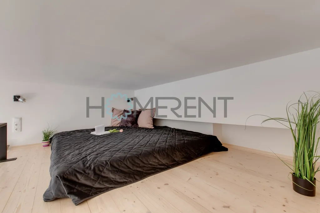 Byt je zařízený. Vybavení kuchyně: lednice, digestoř, trouba, sporák, myčka. Dále jsou v bytě k dispozici úložné prostory, sedačka, stůl a matrace v loftovém prostoru
