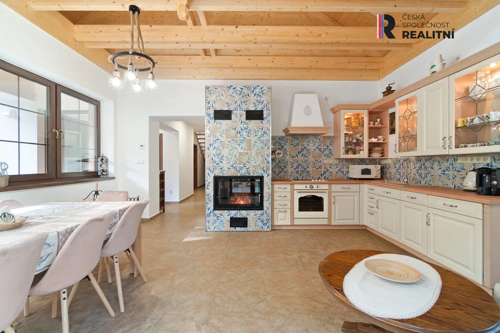 V objektu se nachází velká prosklená jídelna s krbem a vintage kuchyní, další 4 pokoje (ložnice), 2 koupelny (toaleta, vana, sprcha), další samostatné WC a technická místnost. Ložnice v přízemí jsou zařízeny malovaným dřevěným nábytkem, horní pokoje jsou též upraveny jako ložnice. Vintage kuchyně s novou troubou a sklokeramickou deskou a dalšími spotřebiči, jídelním stolem pro 8 osob. Vytápění nemovitosti a ohřev teplé vody je řešen tepelným čerpadlem systémem vzduch/voda. TV a internetové připojení je poskytováno přes bezdrátové Wi-Fi.