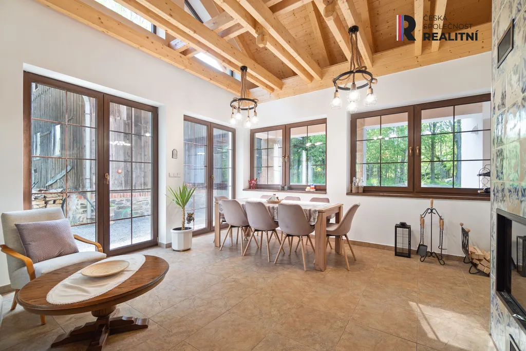 Objekt je vhodný k bydlení či rekreačním účelům. Komfortní bydlení zajišťuje podlahové vytápění v celém objektu, krbová kamna ve společenské místnosti, vintage kuchyně s novou troubou a sklokeramickou deskou.