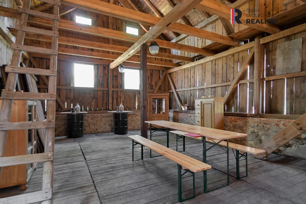 Vedle chalupy se nachází stylová stodola (r. 1927), kde je možné kryté posezení v letních měsících. Venkovská stodola (7x11m) je vhodná pro párty a ke společnému trávení volného času, vybavena zahradním nábytkem, výčepem, nádobím a toaletami s umyvadlem.