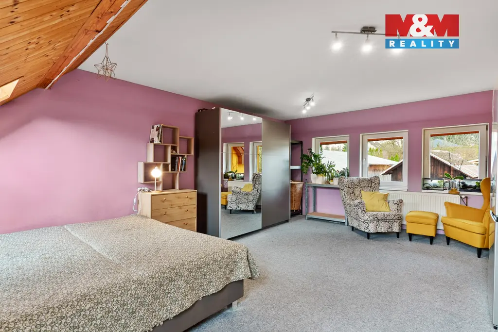 Součástí nemovitosti je také velká garáž, která poskytne dostatek místa nejen pro parkování, ale i pro dílnu či skladování. Na zahradě navíc najdete praktické dřevníky, ideální pro uskladnění dřeva i zahradní techniky.