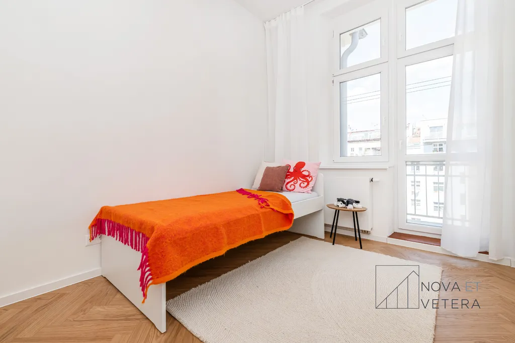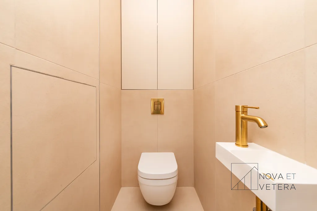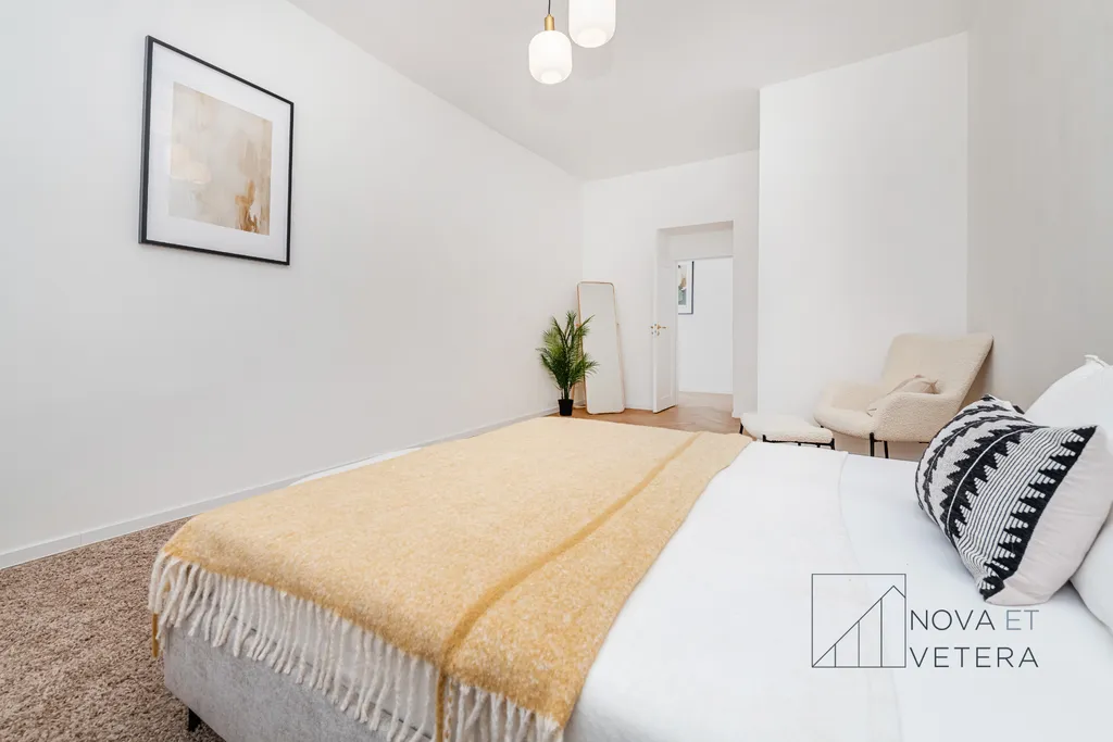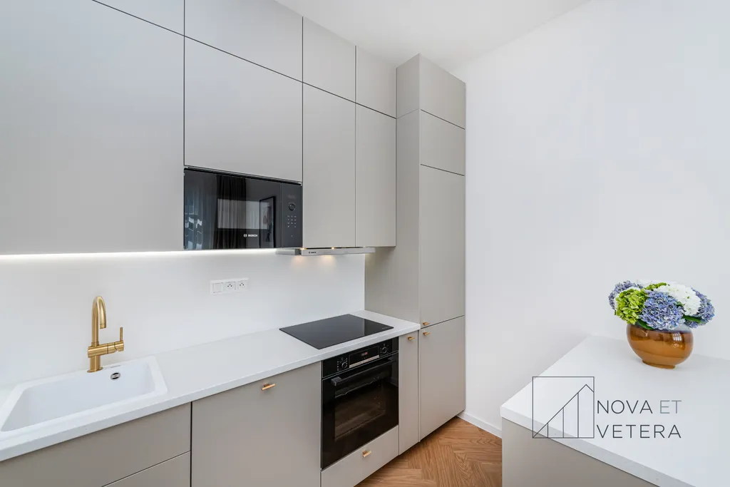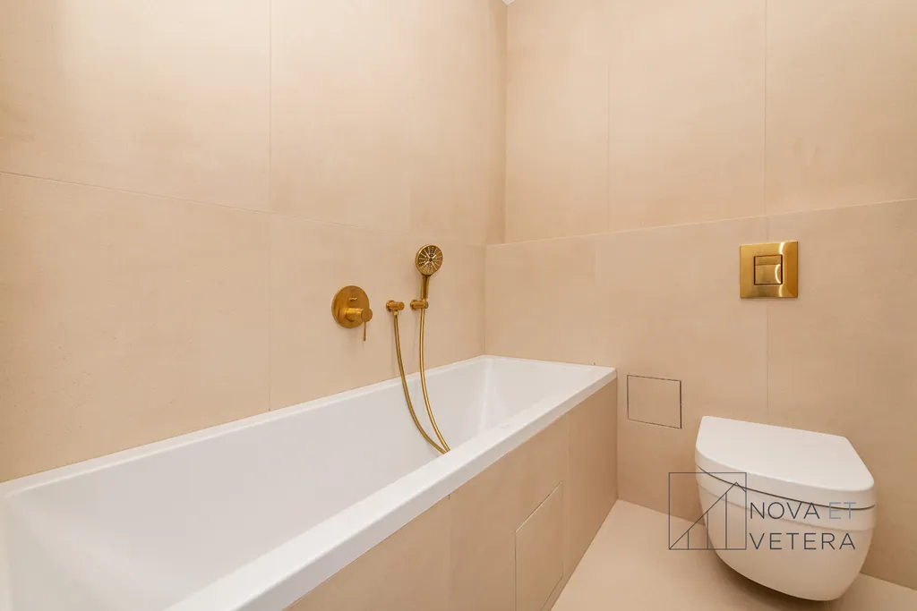 Rekonstrukce ve zahrnuje nové dřevěné designové podlahy, kvalitní obklady a dlažbu Marazzi, nové rozvody elektřiny, vody a odpadů, sanitu značky GROHE a moderní kuchyňskou linku včetně vestavných spotřebičů značky BOSCH s prodlouženou pětiletou zárukou. Byt tak bude připraven k okamžitému bydlení ve vysokém standardu, bez nutnosti dalších investic.