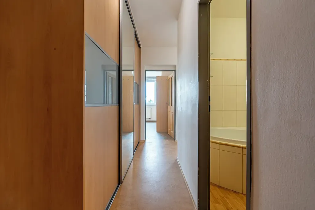 Byt je krásně prosvětlený a plný úložných prostor. V blízkosti veškerá občanská vybavenost, školy, školky, restaurace, obchody.