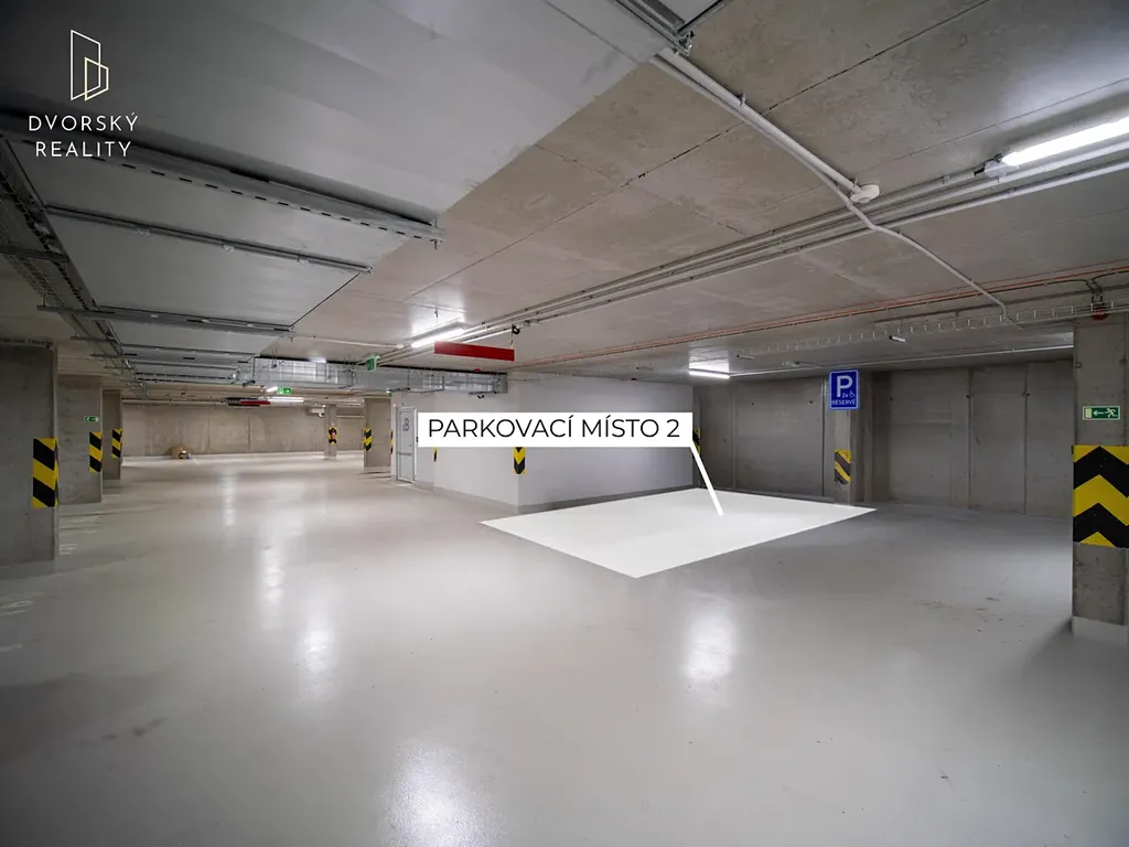 • dvě parkovací stání (z toho jedno nadstandardně prostorné, vhodné i pro kombinaci auto + motorka či osoby se sníženou mobilitou)