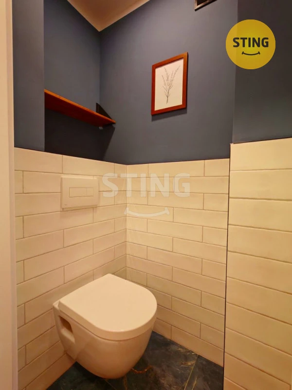 Díky rekonstrukce vznikla velká atypická koupelna s vanou, umyvadlovou skříňkou š. 80 cm, místem na pračku i sušičku a další koupelnový nábytek. Obývací pokoj s kuchyňským koutem působí velmi útulně. Kuchyňská linka je vybavená značkovými elektrospotřebiči ( myčka, el. trouba, mikrovl. trouba, indukční deska, digestoř, atd.). Další dva pokoje mají samostatné vstupy z předsíně. Mimo to byt disponuje šatnou a samostatným WC.