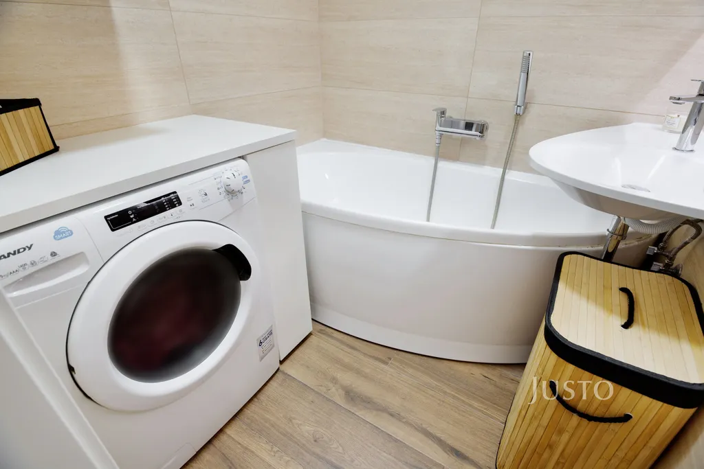 Dominantou bytu je prostorný obývací pokoj, jehož součástí je na míru vyrobená obývací skříň, která je zahrnuta v ceně. Na obytný prostor plynule navazuje moderní kuchyňská linka na míru s ostrůvkem, plně vybavená vestavěnými spotřebiči.