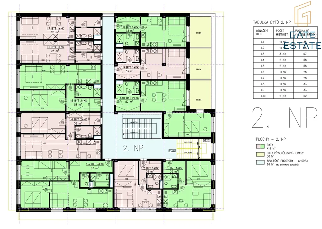 V tomto inzerátu uvádím byt 1kk, 33m2 + sklep + terasa 10,5m2, umístěný v 2NP. Byt je vybavený kuchyňskou linkou na míru vč. spotřebičů výše uvedených. V barevném půdorysu, který uvádíme ve fotografiích, se jedná o byt č. 1.9.