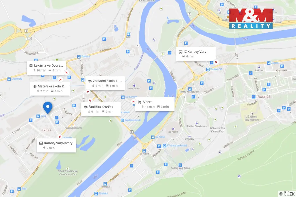 Lokalita Dvory patří mezi vyhledávané části Karlových Varů díky skvělé dostupnosti a pohodlnému bydlení. V bezprostředním okolí najdete školu, školku, obchody i zastávku MHD vzdálenou jen 2 minuty.