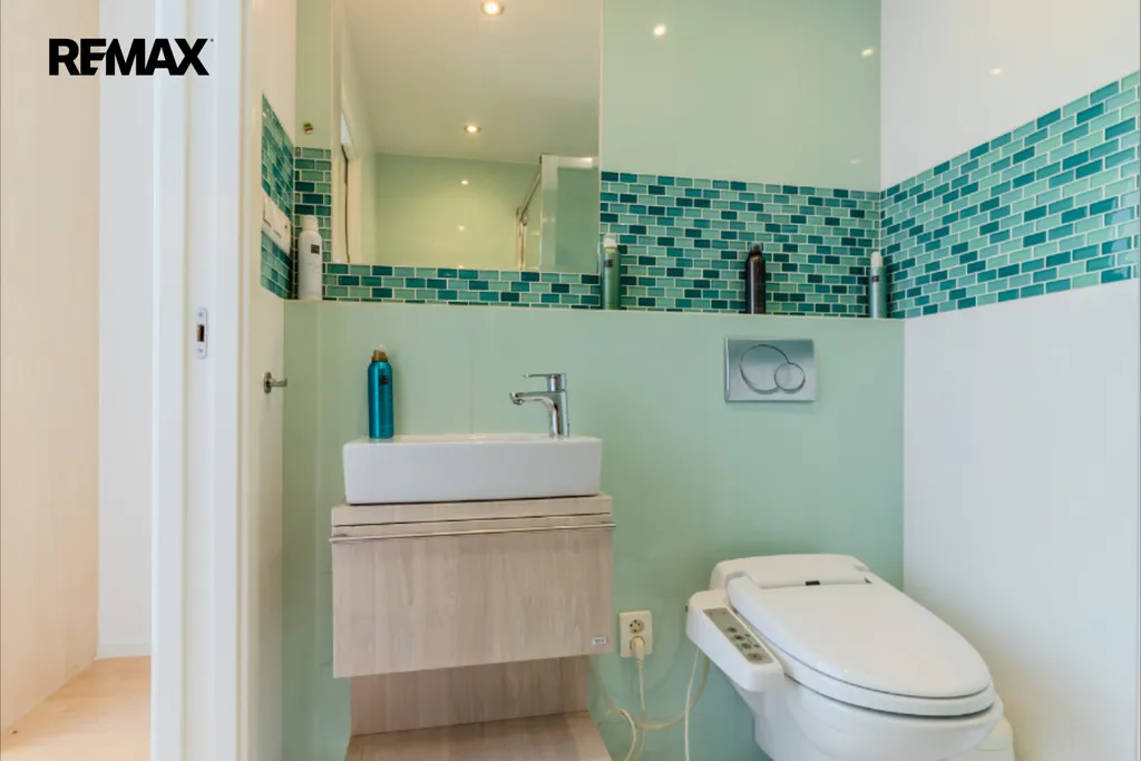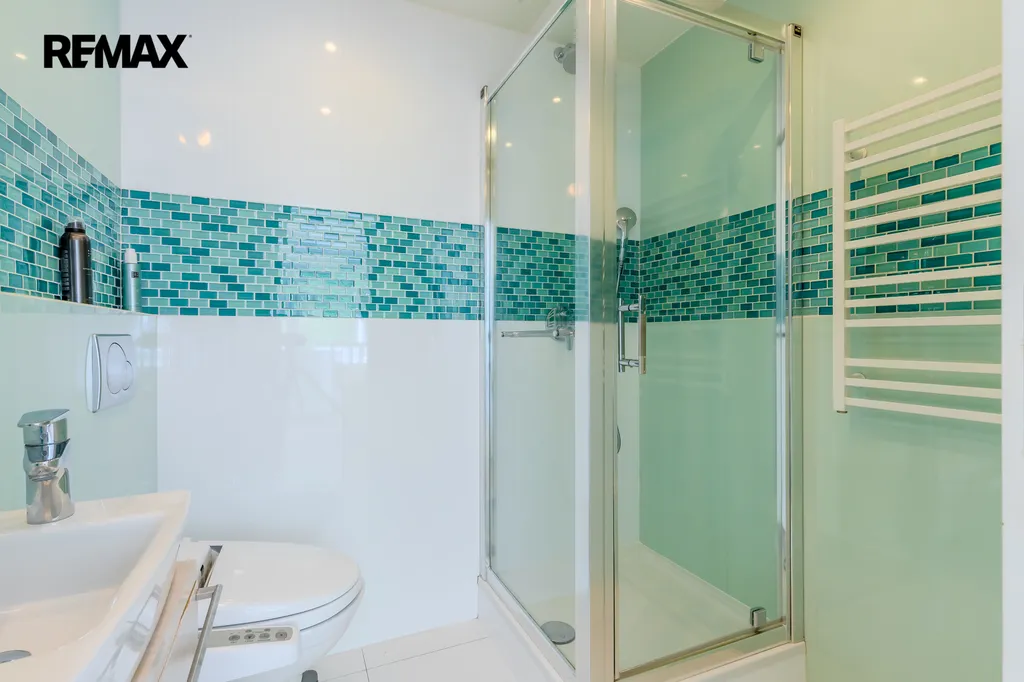 K dispozici jsou celkem dvě koupelny v nadstandardním provedení (sanita Laufen a Roca, designové obklady Los Kachlos), což výrazně zvyšuje komfort každodenního života.