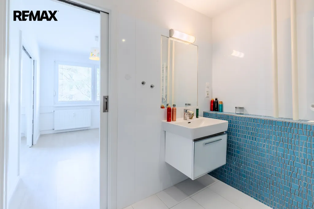 Samozřejmostí jsou vestavěné skříně Woodface ve všech pokojích i na chodbě, klimatizace ve dvou místnostech, nová elektroinstalace, podlahy i plastová okna. Praktická komora přímo naproti bytu (1 m²) nabízí další úložný prostor.