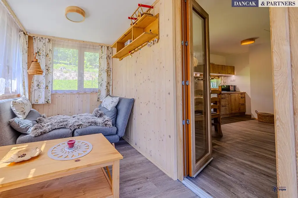 Nemusíte se obávat ani chladnějšího období, chata je opravdu dobře zateplena, o teplo se postará podlahové vytápění a atmosféru navodí hřejivý oheň z krbových kamen. A plastová okna s izolační trojsklem nedovolí, aby jimi profoukl sebe větší vítr.