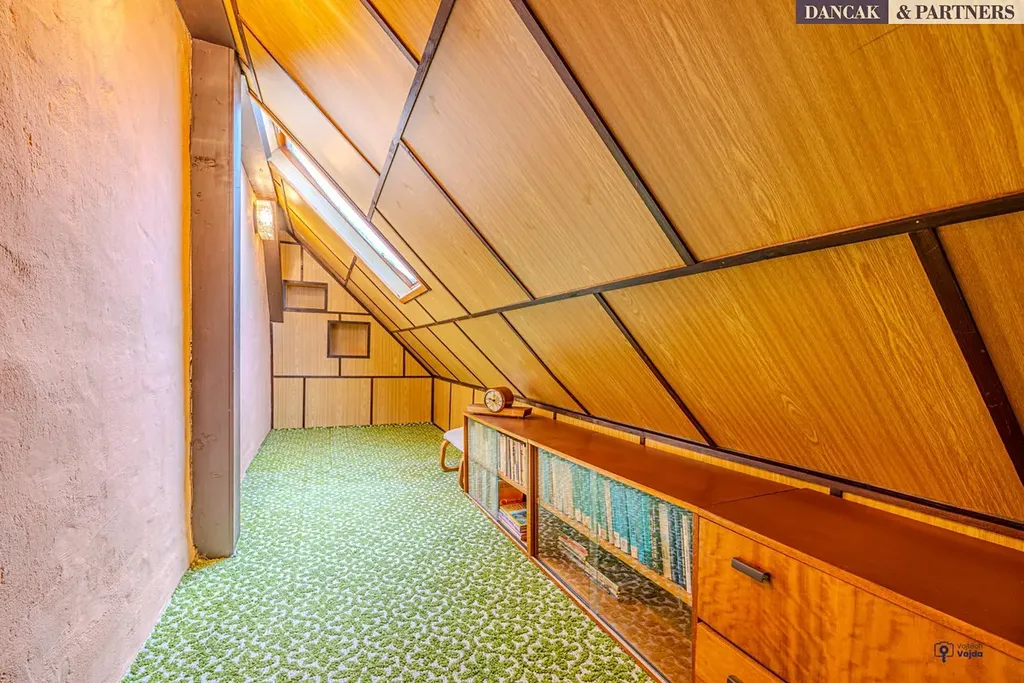 V patře jsou tři pokoje a v šikminách vznikly ještě dvě malé místnosti se střešními okny, které mají různorodé využití.