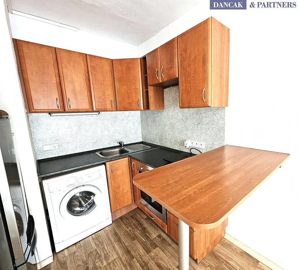 Kuchyň je vybavena rohovou kuchyňskou linkou s vestavěnou troubou, pračkou, mikrovlnkou, novou sklokeramickou varnou deskou, lednicí s mrazákem a barovým pultem. V koupelně sprchový kout, umyvadlo, keramické obklady a toaleta. Plastová okna s novými žaluziemi, podlahy PVC krytina.
