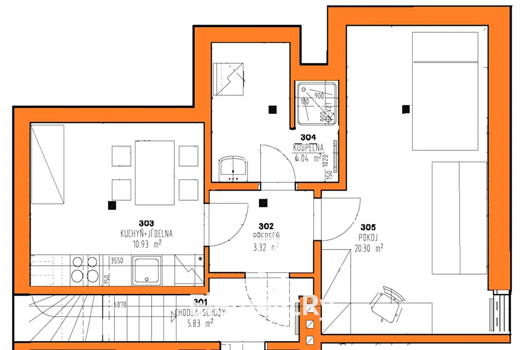 - obývací pokoj spojený s kuchyní