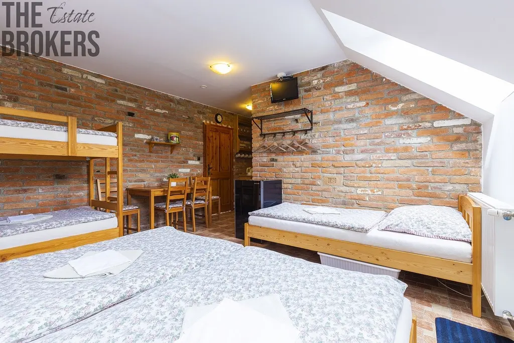 Penzion disponuje kapacitou 16 lůžek ve čtyřech samostatných apartmánech a dlouhodobě fungujícím provozem. Díky efektivně nastavenému chodu a velmi nízkým fixním nákladům generuje zajímavý roční výnos a zároveň nabízí potenciál další optimalizace či růstu. Součástí penzionu je vinný sklep, který přirozeně rozšiřuje možnosti využití – od degustací až po menší soukromé akce.