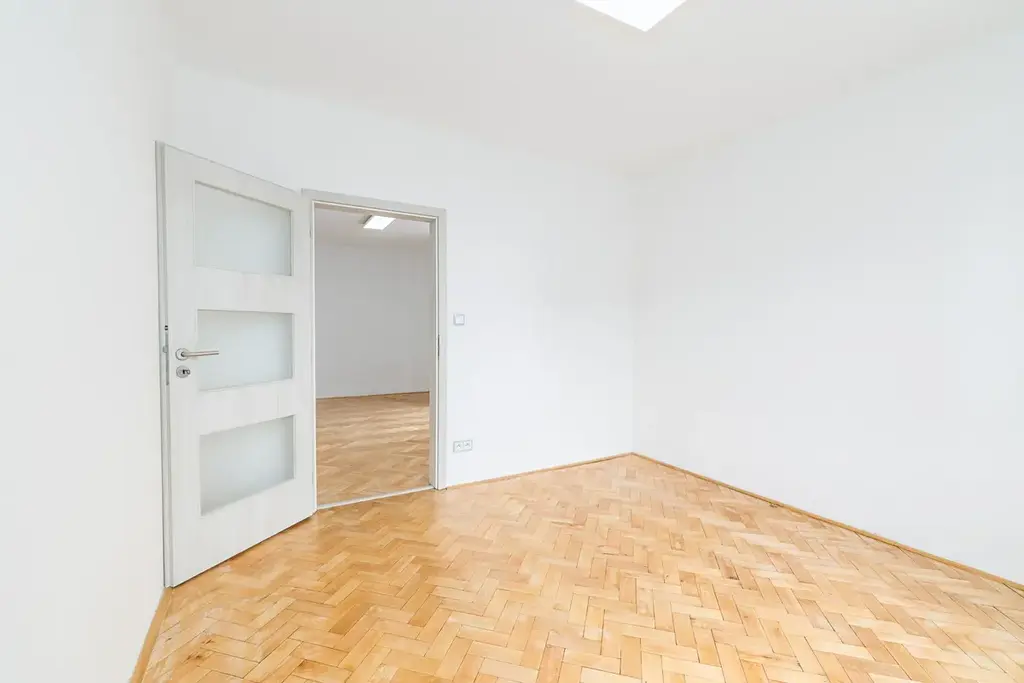 Byt se nachází v 1.patře a nadchne Vás prostorem a světlem. Koupelna s nadčasovým designem a celkově celý interiér bytu působí vzdušně a moderně. Nabízíme byt, který je ve velmi dobrém stavu po celkové rekonstrukci, proběhla renovace podlah, které ocení milovníci parket. Dominantou jednoho z pokojů je velké francouzské okno, které je vidět na fotografiích.