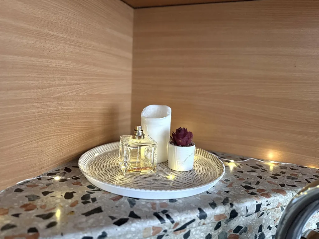 Za vstupními dveřmi se ocitneme na velmi prostorné chodbě (cca 10,30 m²), která disponuje prostornou šatní skříní a vstupy do většiny místností. Po levé straně je kuchyně (cca 10,20 m²), která je vybavena lednicí s mrazákem, novou troubou, novým sporákem a myčkou. Kuchyně je orientována na severovýchod. Velmi pěknou místností je obývací pokoj (cca 18,50 m²) se sedačkou a televizním stolkem, kde hlavní dominantou je velmi prostorný balkón (cca 5 m²). Obývací pokoj s balkónem je orientován na východ. Na chodbě se dále nachází spíž (cca 2,50 m²), která je vybavena regálovým systémem pro jednodušší uskladnění věcí, může sloužit i jako šatna. V bytě dále nalezneme samostatnou toaletu o výměře cca 1 m² a koupelnu (cca 3 m²), která disponuje vanou, umyvadlem a zrcadlem. Po pravé straně ze vstupní chodby vcházíme do pokoje o výměře cca 18,60 m², který je vybavený postelí, psacím stolem se židlí a skříněmi, a je orientovaný na jihozápad. Z tohoto prostorného pokoje se vchází do ložnice (cca 12 m²), ve které se nachází velká šatní skříň na míru a dvojlůžko. Ložnice je taktéž orientována na jihozápad.