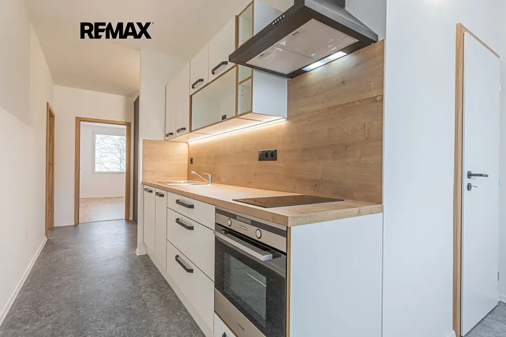 Byt se nachází ve 2.podlaží zrekonstruovaného panelového domu (s výtahem) v klidné a příjemné lokalitě v ulici Josefa Schovánka. Rekonstrukce bytu proběhla skutečně kompletně - nové rozvody elektro a ZTI, vyzděné jádro, zcela nová koupelna, samostatné WC, podlahy, dveře, moderní kuchyňská linka na míru se zabudovanými spotřebiči (sklokeramická varná deska, trouba, digestoř a myčka), v předsíni je k dispozici praktická vestavěná skříň, vše sladěno v moderním designu.