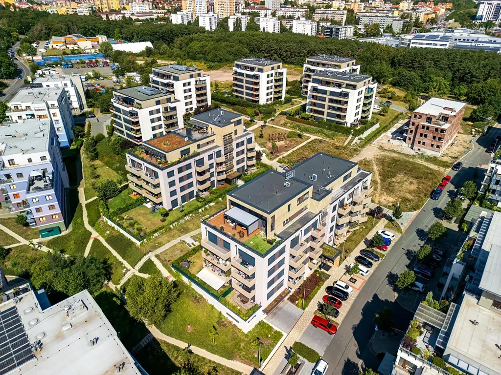Komorní bydlení objekt s nízkým počtem bytů pro větší soukromí a klid Komunitní prvky v celém projektu dětské zóny, work out hřiště, prostor pro relax a trávení volného času o samotě nebo s přáteli Ekologická řešení v rámci projektu zelená vegetační střecha, která přispívá ke zlepšení mikroklimatu, zadržování dešťové vody i celkové ekologické udržitelnosti budovy