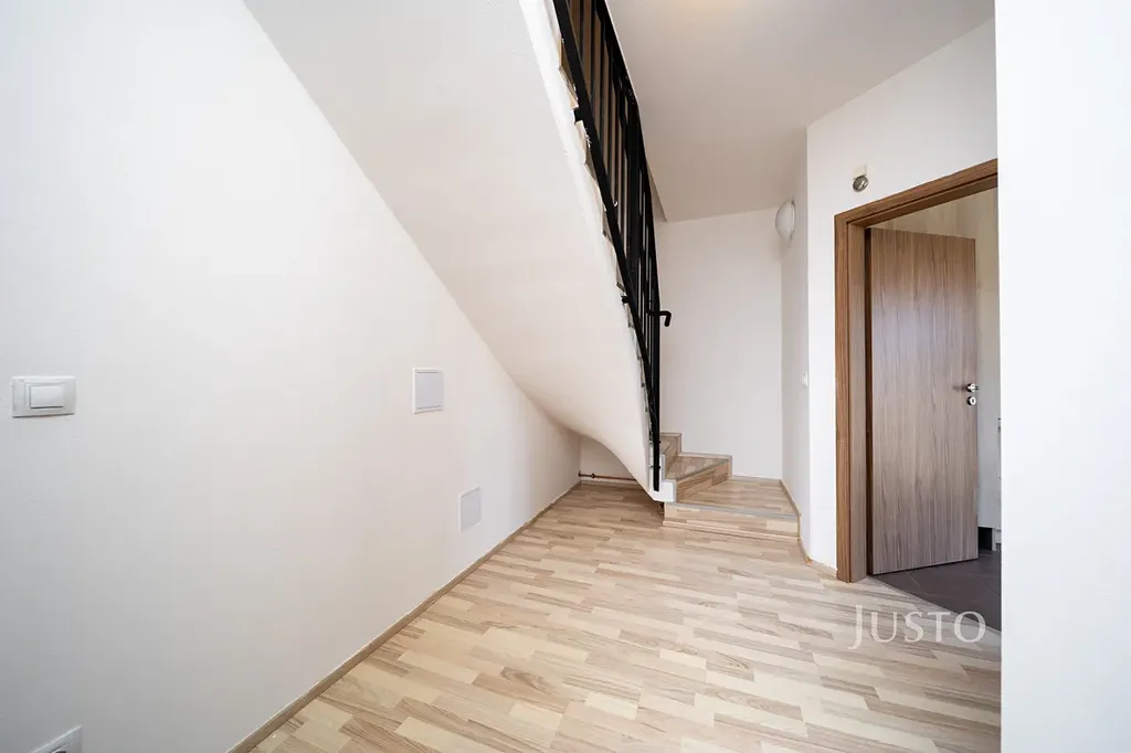 V přízemí se dále nachází samostatný pokoj (9,14 m²), který může sloužit jako dětský pokoj, pracovna nebo zázemí pro hosty. Nechybí samostatné WC (1,38 m²), technická místnost ideální pro umístění pračky a sušičky a vstupní chodba s dostatkem úložného prostoru.