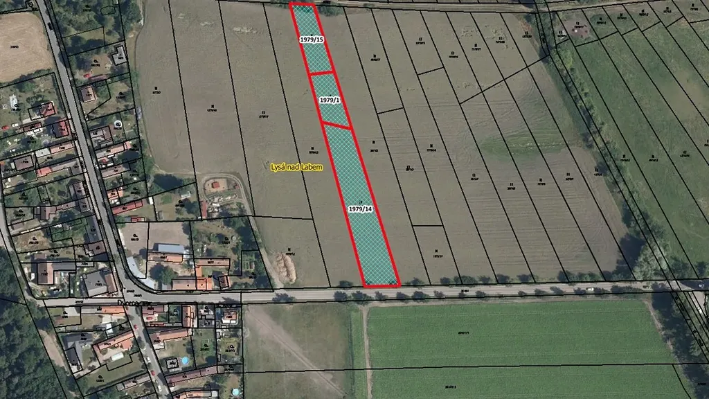 Nabízíme k prodeji atraktivní pozemky p.č. 1979/14 o výměře 2 856 m2, p.č. 1979/1 o výměře 780 m2 a p.č. 1979/15 o výměře 946 m2 v katastrálním území Lysá nad Labem. Pozemky jsou ve výhradním (100 %) vlastnictví (LV č. 12376). Nachází se v klidné části katastru a jsou v současnosti řádně obhospodařovány místním zemědělcem. Přístup zajištěn přes obecní pozemky.