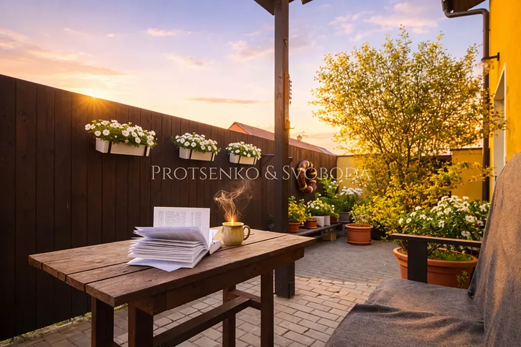 Zahrada je skutečným bonusem této nemovitosti. Krásná, klidná, s pocitem absolutního soukromí, kde si můžete dovolit zpomalit. Ranní káva, letní večery, bazén, ticho. Díky poloze na konci obce zde téměř nic neruší – žádný tranzit, žádný hluk.