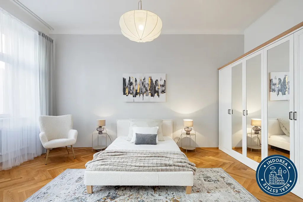 Nabízíme k pronájmu výjimečný byt o dispozici 3+kk a celkové ploše 116 m², situovaný ve 3. nadzemním podlaží udržovaného činžovního domu s novým výtahem v prestižní ulici Lesnická na Smíchově. Jedná se o stylové bydlení s atmosférou staré Prahy, doplněné moderním komfortem a nádhernými výhledy na Vltavu, Jiráskův most i Tančící dům.