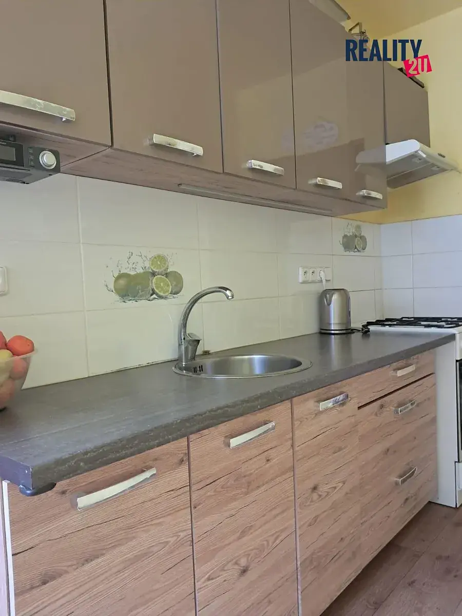 Ve výhradním zastoupení nabízíme prostorný a moderně zrekonstruovaný panelový byt 2+1 v osobním vlastnictví v Hustopečích u Brna, ulice Větrná. Byt se nachází ve zvýšeném 1.NP bez výtahu. Rekonstrukce celého domu proběhla v r. 2019. Byly vyměněny okna za plastová a celý dům byl zateplen, následovala nová fasáda domu. Rekonstrukce bytu proběhla v r. 2018 a výsledkem je upravené dispoziční řešení bytu, kdy byla zachována vstupní hala, ze které se dostaneme do zděné koupelny s vanou a WC, která byla cca o 1,5 m2 zvětšená. Z haly jsou pak také vstupy do kuchyně o výměře 12m2 a jednotlivých pokojů ( ložnice 12,1 m2, dětský pokoj s lodžií 16 m2, ). Celková podlahová plocha bytu je 53,7 m2. Rekonstrukce: nová zděná koupelna a WC, nové dřevěné obložky a dveře do koupelny, vestavěné skříně na míru v hale, podlahy- zátěžová guma v dekoru dřeva, dlažba v koupelně a WC, nová kuchyňská linka, zasklená lodžie. V oknech jsou žaluzie. Rozvod tepla je řešen centrálně, na radiátorech jsou měřiče spotřeby. Vlastní elektroměr 230/380 V. Lokalita nabízí kompletní občanskou vybavenost – v okolí najdete obchody, školy, školky, restaurace i veškeré služby. Výborná dopravní dostupnost umožňuje pohodlné spojení do centra města i do přilehlého okolí , v blízkosti dálnice D1. Energetická třída C Orientace bytu : V-Z. Celkové náklady na bydlení: 4.688,-Kč ( Fond oprav, pojištění, splátka úvěru, správní příspěvek celkem 1.603,-Kč, zálohy na energie -3.085,-Kč ) + elektřina . K bytu patří sklepní kóje 2 m2. Lodžie je po rekonstrukci, prosklená, výměra cca 4 m2- nezapočítává se do podlahové plochy bytu. Parkování : před domem dostatek parkovacích míst;