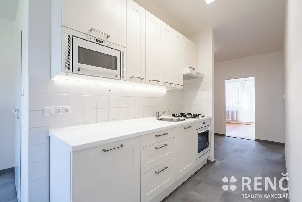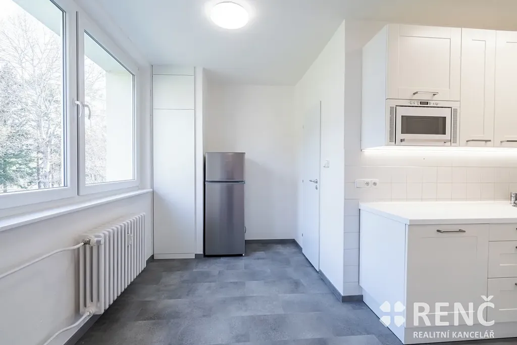 K pronájmu nabízíme moderně zrekonstruovaný byt o dispozici 3+1, který se nachází ve 2. patře panelového bytového domu bez výtahu na ul. Řezáčova v Brně – Komíně. Byt je obklopen zelení a je situován v klidné lokalitě v blízkosti krásné přírody Palackého vrchu.