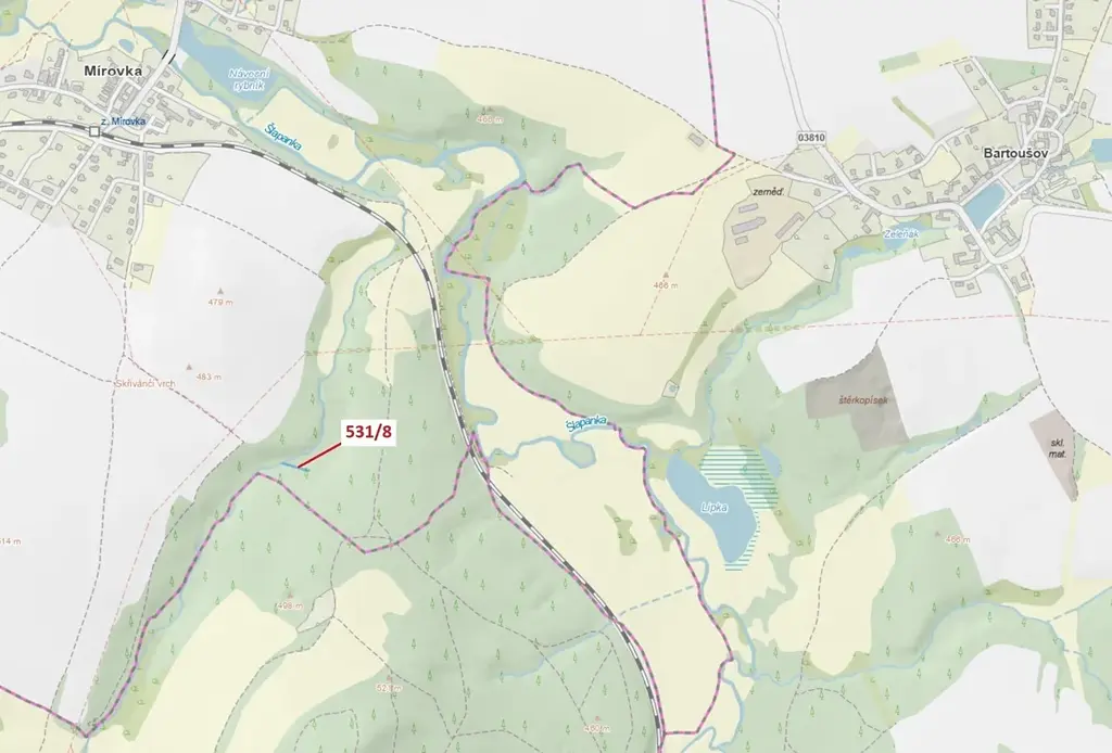 Lesní pozemek o výměře 212 m2, parcelní číslo 531/8, podíl 1/1, katastrální území Mírovka, obec Havlíčkův Brod, obec s rozšířenou působností Havlíčkův Brod, okres Havlíčkův Brod, Kraj Vysočina.