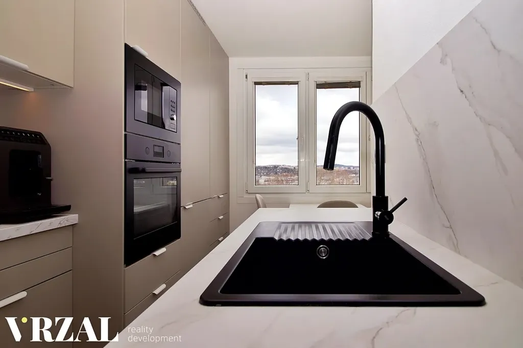 Tento byt o velikosti 76 m² prošel nákladnou rekonstrukcí v letech 2024-2025, při níž byly použity kvalitní materiály a moderní interiérové prvky.