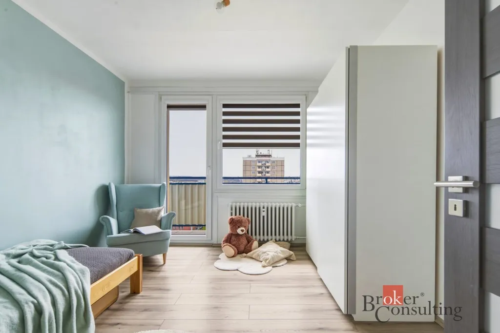 Dispozice je navržena s důrazem na komfort každodenního bydlení – vstupní chodba se šatnou, samostatná ložnice, další pokoj ideální jako pracovna či dětský pokoj a prostorný obývací prostor s kuchyní a jídelní částí. Nechybí ani koupelna a samostatné WC. Celek působí velmi funkčně a zároveň příjemně otevřeně. Příjemným benefitem je balkon o velikosti 3,60 m², který nabízí prostor pro ranní kávu i večerní odpočinek, a sklepní kóje o velikosti 0,80 m² pro praktické uložení věcí.
