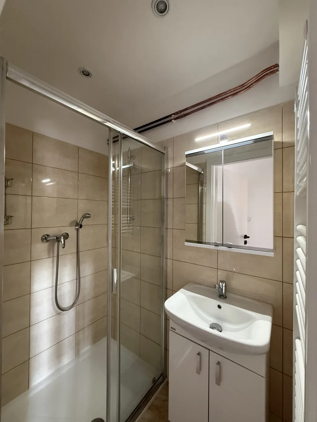 Kuchyňská linka je vyrobena na míru truhlářem a vybavena kvalitními spotřebiči. Koupelna byla zachována v původním uspořádání. Vytápění je zajištěno vlastním plynovým kotlem s novými rozvody.