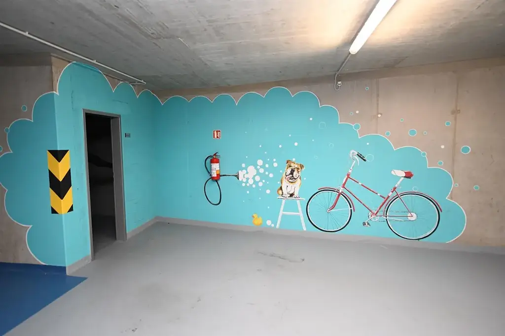 K bytové jednotce náleží sklep a parkovací stání v podzemních garážích domu.