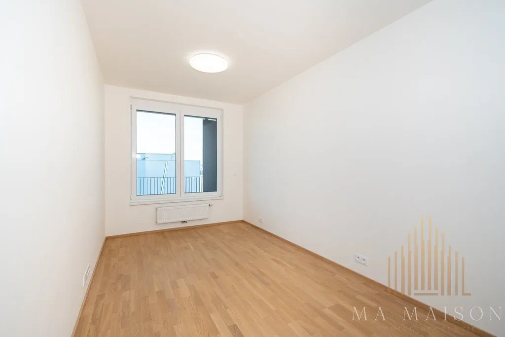 Nezařízený byt, jehož plocha je 54,8 m², má velmi dobrou dispozici. Prostorný obývací pokoj s kuchyňskou linkou do L, s veškerými spotřebiči (indukční varná deska, trouba, digestoř, kombinovaná lednice, myčka). Z obývacího pokoje je vstup na balkon (9.6 m²). Chodba bytu je vybavena šatní skříní. Ložnice je úplně prázdná, v koupelně vana a toaleta. Výhodou je vlastní sklepní kóje (1.7 m²), ideální pro uložení sportovního vybavení.