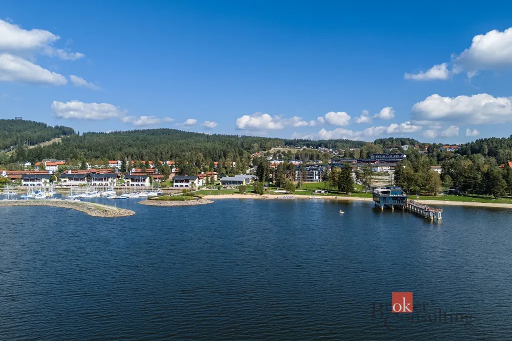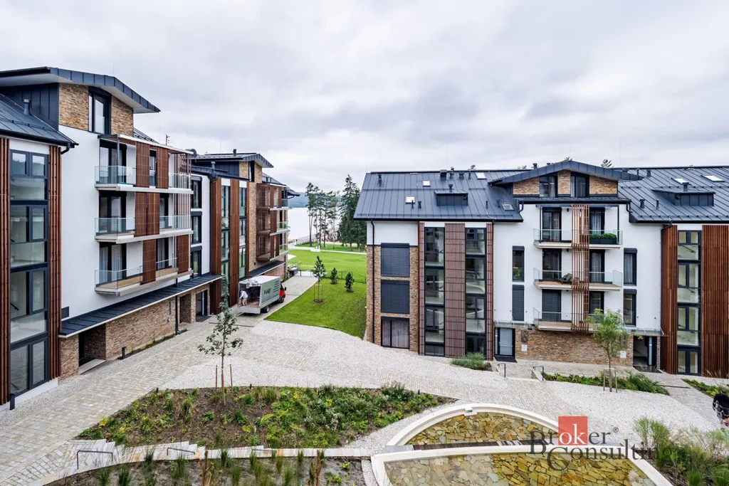 Velká okna a prosklené dveře přivádějí do interiéru dostatek denního světla. Dominantou bytu je však prostorný balkón s dech beroucím výhledem na hladinu Lipenské přehrady, který nabízí dokonalé místo pro relaxaci i společenské chvíle. Součástí prodeje je parkovací stání i sklepní kóje. V domě je k dispozici designová recepce.