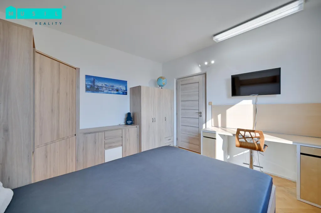 Pronájem krásného, kompletně zrekonstruovaného, plně zařízeného, klimatizovaného bytu o dispozici 4+kk nacházející se na ulici Foerstrova v Olomouci. Byt má výměru 64 m2 a je situován v 5. patře panelového domu. Staří rekonstrukce jsou dva roky, kdy vznikla v bytě o dispozici 3+1 jednotka 4+kk, veškeré úpravy byly provedeny velmi vkusně a jsou domyšleny do posledního detailu s širokým vybavením úložných prostor. Nová kuchyňská linka je plně vybavena veškerými spotřebiči a její dominantou je pracovní deska vyrobena z kamene, který jistě každý ocení vzhledem k jeho funkčnosti a využití. Dále zůstane novému nájemníkovi k dispozici pračka, sušička a lednice s mrazákem. Z útulné obývací části je vstup na balkón, kde lze trávit volné večery u skleničky dobrého vína či šálku kávy. Dále jsou zde k dispozici tři samostatné ložnice. Všechny pokoje jsou neprůchozí, což nabízí možnost ideálního rodinného bydlení. Koupelna je zajištěna vanou a umyvadlem, dále samostatné WC. K bytu náleží sklep, možnost využití společné kolárny. Nízké náklady na bydlení. Nemovitost se nachází v jedné z nejžádanějších lokalit města Olomouce s veškerou občanskou vybaveností: škola, školka, pošta, sportovní vyžití, MHD. Výborná centra města, také výjezd na dálnici. Pokud Vás toto nabídka zaujala neváhejte mne kontaktovat, ráda Vám zajistím prohlídku. Cena pronájmu nemovitosti: 18.900 Kč + energie 3.500 Kč, elektřina přepisem na nájemníka, kauce ve výši dvou měsíčních nájmů, provize RK jeden měsíční nájem + DPH. Volný po dohodě.