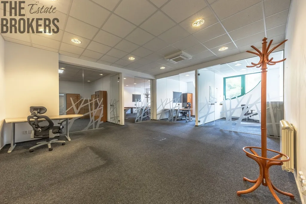 Budova má tři nadzemní podlaží a celkovou užitnou plochu 296 m². Kancelářské prostory jsou rozvrženy do dvou pater a doplněny o jednací místnost. Dispozice je praktická, přehledná a umožňuje efektivní fungování týmu bez zbytečných kompromisů.