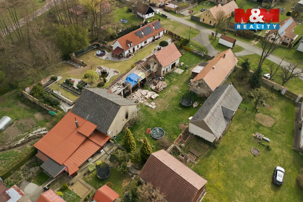 Dům se nachází na prostorném pozemku o výměře 1 533 m² s rozlehlou zahradou a stodolou. K dispozici je elektřina, vlastní studna, velká jímka, částečné podsklepení a vytápění kotlem na tuhá paliva.