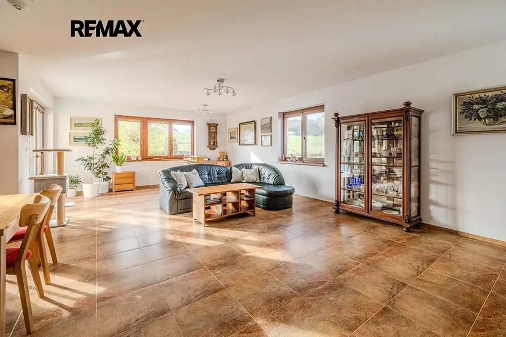 Dům stojí na kraji obce v tiché lokalitě s výhledy do zeleně.