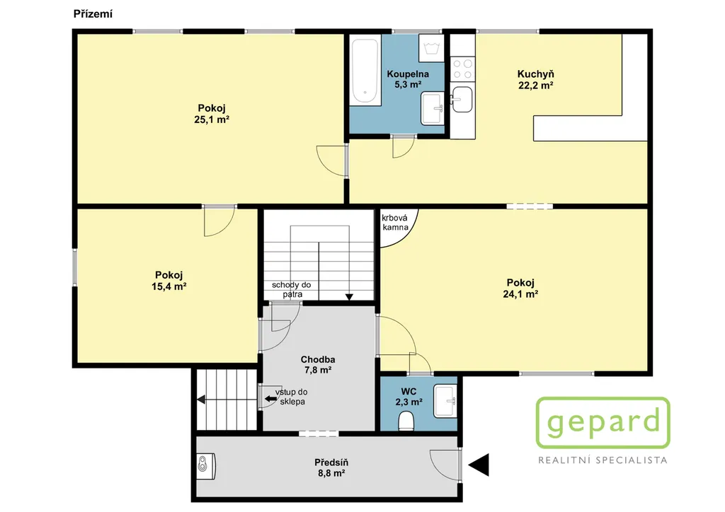 Celková plocha rodinného domu je 209,90 m². Dům nabízí dvě oddělené bytové jednotky po rekonstrukci, každou s vlastním vstupem ze společných prostor v přízemí (16,6 m²). V 1.NP je byt o dispozici 3+1 (94,40 m²), v 2.NP je 3+kk (98,90 m²). Objekt je podsklepený. Vytápění zajišťuje plynový kotel společný pro oba byty a pro ohřev vody má každý byt samostatný elektroboiler. Dům je napojen na veškeré inženýrské sítě, má plastová okna a rekonstruované instalace. Oba byty jsou aktuálně pronajaty stabilním nájemníkům, což z nemovitosti činí i zajímavou investiční příležitost. Dle preferencí nového majitele mohou být byty uvolněny.