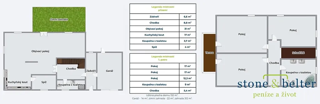 • Krytá zimní zahrada s dlažbou, vytápěním a prostorná zahrada kolem domu