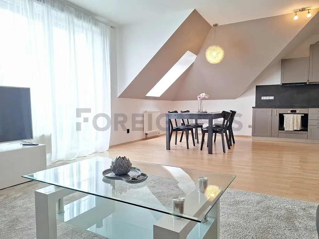 Byt se nabízí kompletně vybavený. Stylová kuchyně disponuje všemi spotřebičemi - lednicí, myčkou, elektrickou troubou, varnou deskou a digestoří. V kuchyni najdete i jídelní stůl se  čtyřmi židlemi.
