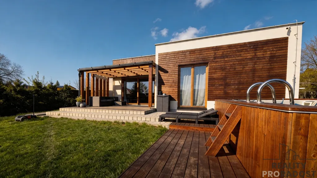 Hledáte moderní bydlení, kde technologie skutečně šetří váš čas i peníze? Exkluzivně nabízíme k prodeji špičkově vybavenou dřevostavbu z roku 2016 s dispozicí 4+kk. S podlahovou plochou 125 m², zastavěnou 132 m2 a terasami o velikosti 40 m² (z toho 20 m² krytých) je tento bezbariérový bungalov ideálním domovem pro náročné, kteří vyžadují chytrou efektivitu, absolutní soukromí a krásné výhledy. Každý centimetr domu byl navržen tak, abyste si užívali komfort bez kompromisů.