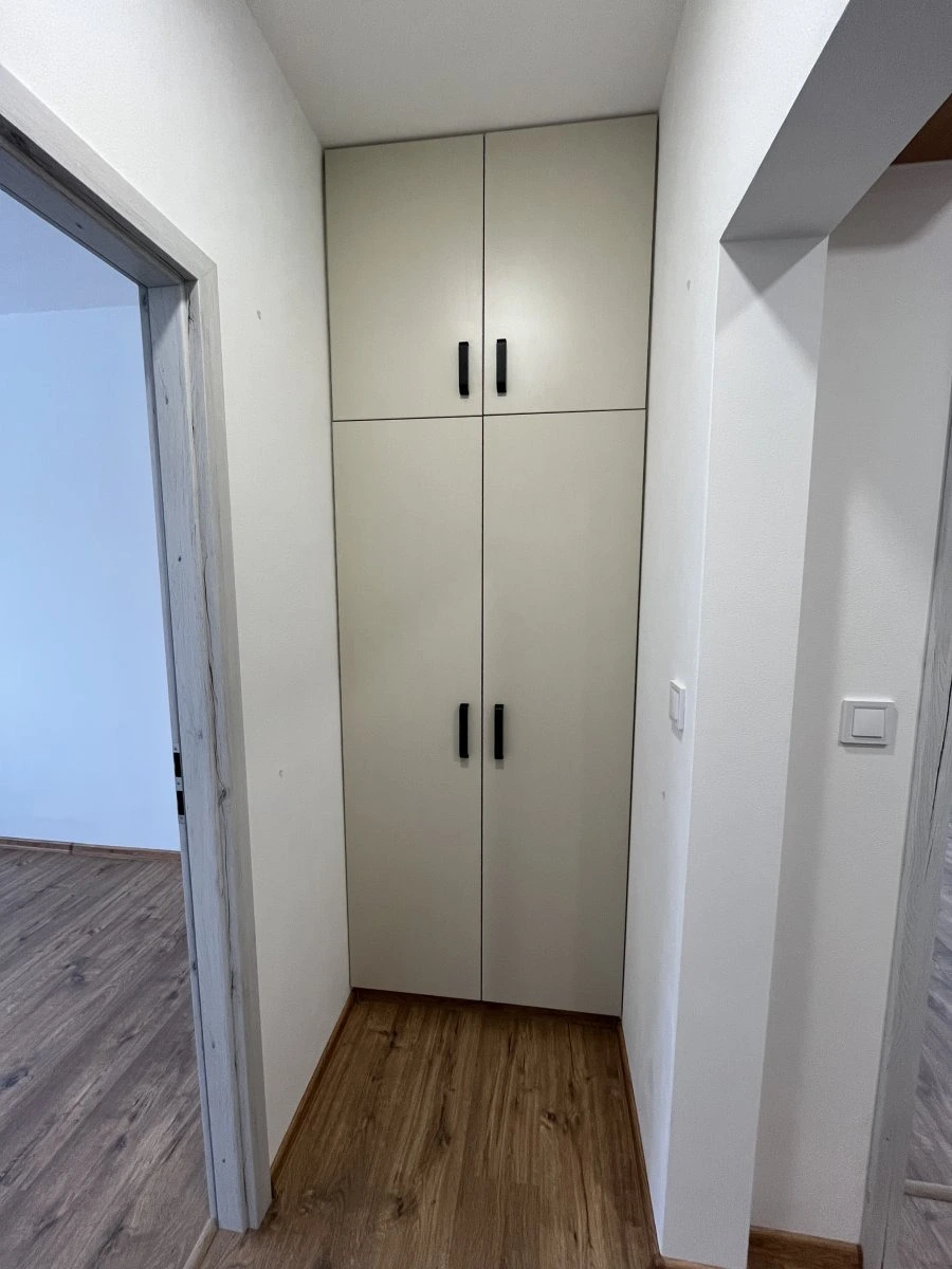Interiér bytu je po celkové rekonstrukci a nabízí ideální plátno pro realizaci Vašich představ o dokonalém domově. Jednotka se pronajímá nevybavená, což je skvělá příležitost pro ty, kteří si chtějí interiér zařídit vlastním nábytkem a vytvořit si tak útulné prostředí podle svého vkusu. Orientace místnosti zajišťuje dostatek přirozeného světla po celý den. Povedená rekonstrukce umožnila vybudovat z chodby šatnu, což zajišťuje další možné úložné prostory, kterých není nikdy dost.