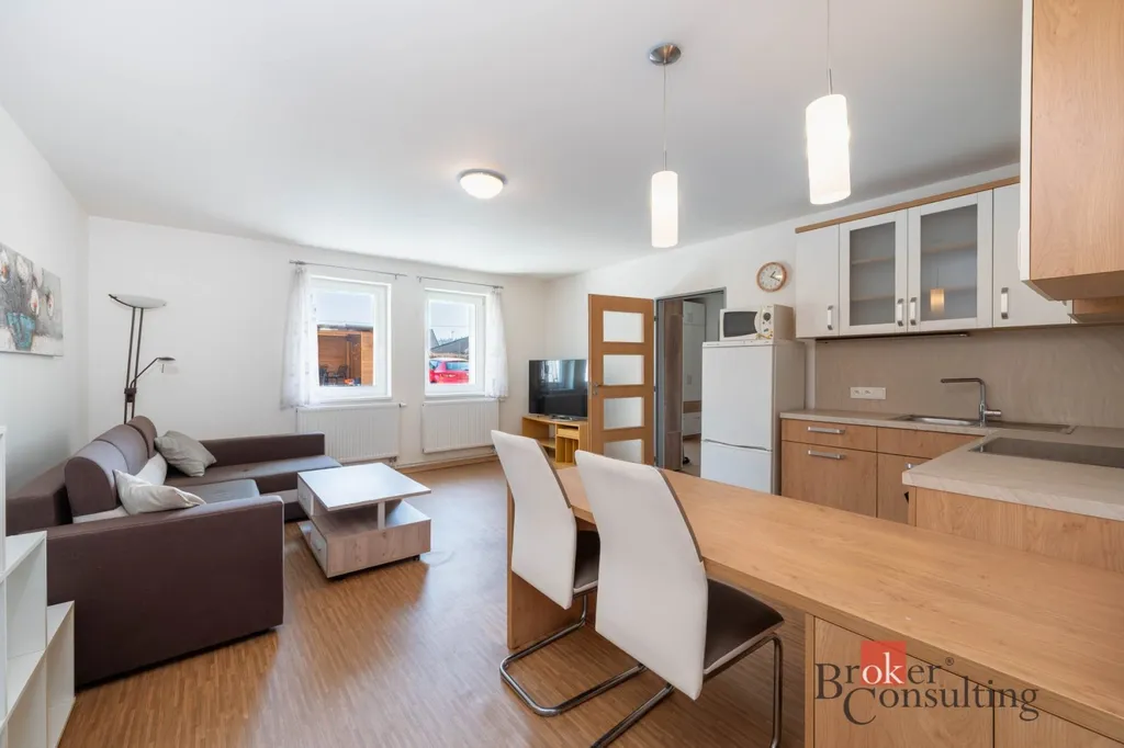 Nabízíme k pronájmu světlý byt o dispozici 2+kk a velikosti 58,8 m², nacházející se v přízemí domu na adrese Tlučenská kolonie, Tlučná. Byt je situován hned u vstupních dveří, což zajišťuje pohodlný přístup.